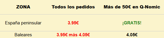 A partir de 50€ en nuestra marca Q-Nomic los gastos de envío son gratuitos*, pero si no los supera, serían 3.95€. El gasto de envío para el resto de marcas es siempre de 3.95€
